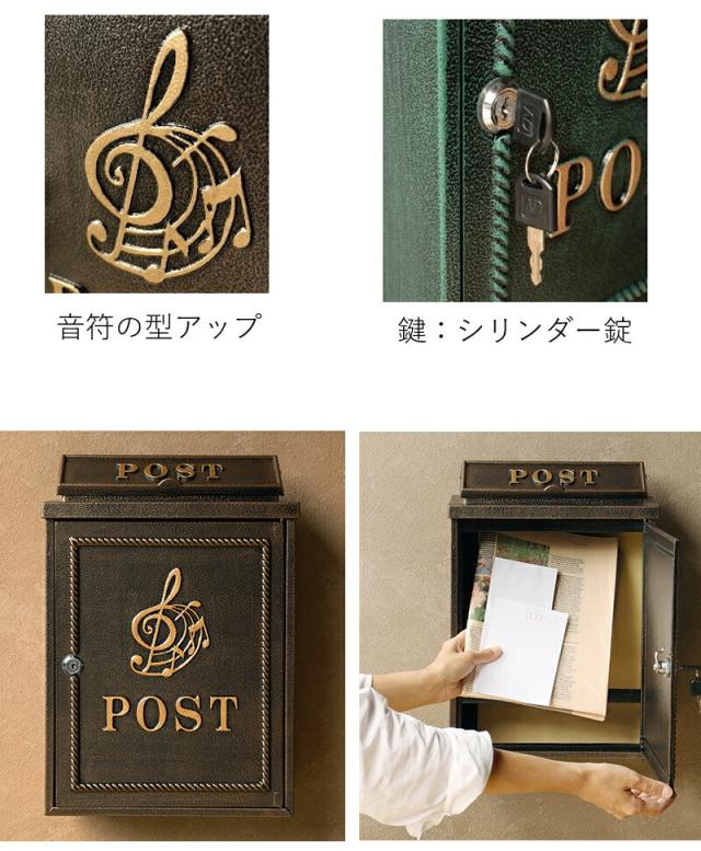 郵便ポスト 約幅30cm 大容量 壁掛けポスト ブロンズ グリーン おしゃれ 鍵付き 郵便ポスト おしゃれ 一戸建て用 郵便ポスト 壁掛けポスト レトロ風 かわいい 可愛い オシャレ お洒落 アンティーク風ポスト 一戸建て用 ポスト 戸建て用 完成品 ポスト 壁掛けポスト