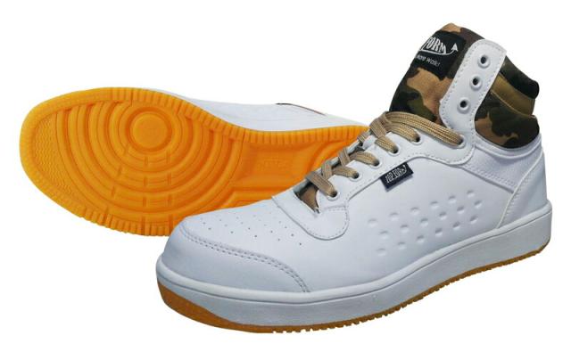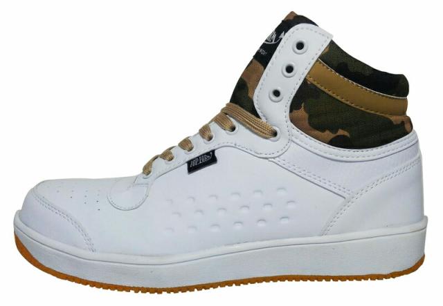 安全靴 スニーカー 白 ホワイト ハイカット セーフティスニーカー メンズ レディース 迷彩 紐靴 紐くつ 反射材使用 靴 シューズ 作業靴 仕事靴 工場 履きやすい設計 制菌 消臭 清潔 消臭効果 消臭 臭いにくい おしゃれ 光る 普段履き 合皮タイプ カモフラ クッション