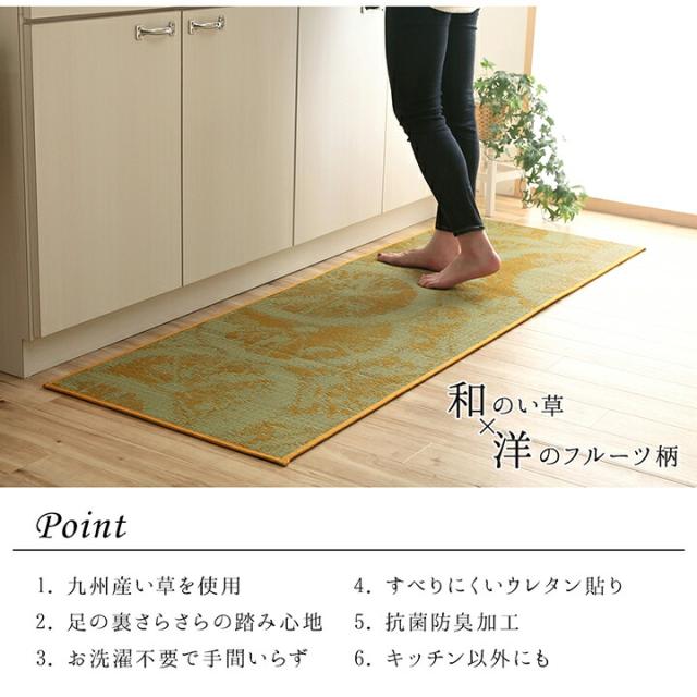 キッチンマット い草 自然素材 日本製 国産 純国産 汚れにくい シミになりにくい ウレタン カジュアル フルーツ キウイ 約 60×120cm