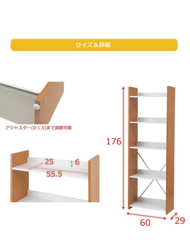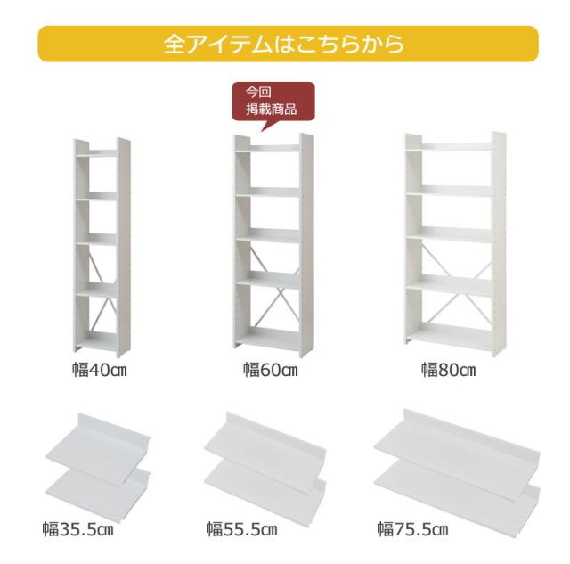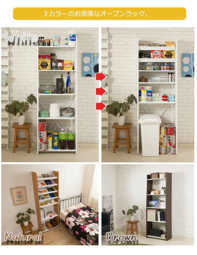 オープンラック 幅60cm 高さ176cm 5段 可動棚 可動式 可変自在棚 ホワイト/ナチュラル/ブラウン 白 スリム 省スペース シェルフ ラック 棚 壁面ラック おしゃれ インテリア 頑丈棚 スチール棚 日本製 おしゃれ 通販/送料無料 人気 送料込み