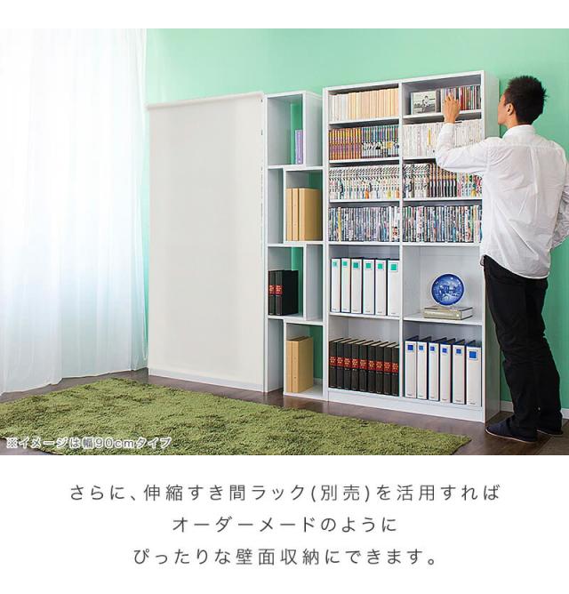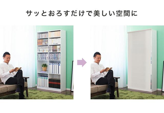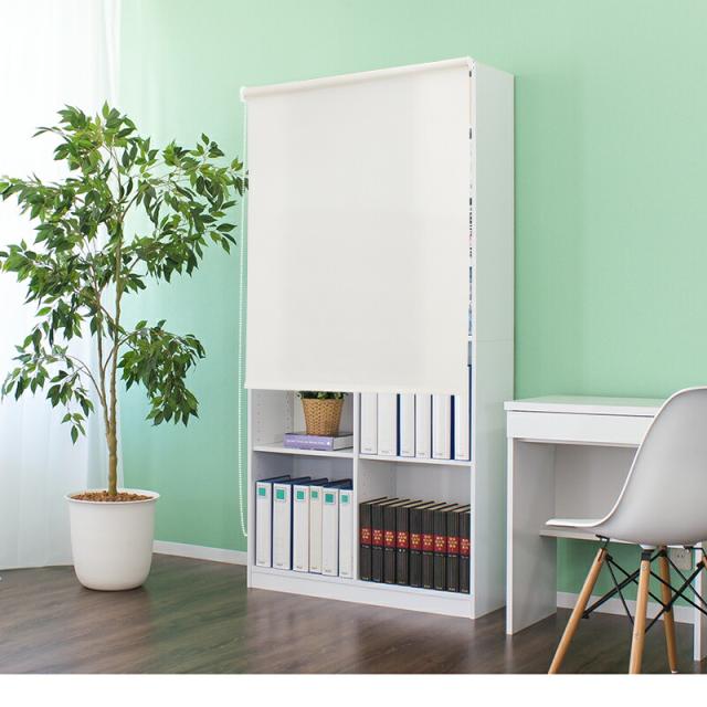 本棚 ロールスクリーン付 シェルフ 幅90cm 高さ180cm ホワイト/ブラウン 木製 ラック シェルフ 書棚 本棚 大容量 オープンラック 木製 A4シェルフ 書類 整理 事務所 壁面収納 子供部屋 教科書 収納