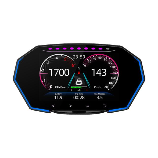 GPS モード機能: 車速 (Km/h または MPH)、電圧、走行時間、走行距離、時計、走行方向、高度、衛星数