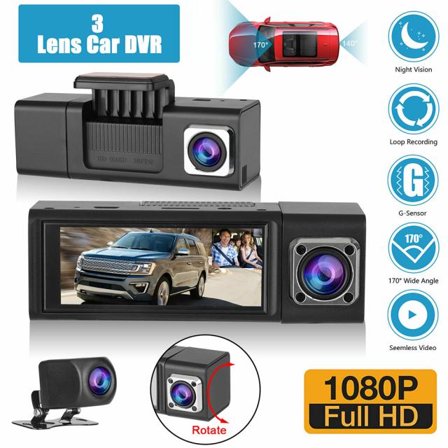 3レンズ 車載DVR ドライブレコーダー Gセンサー 1080p フロント+リア+カメラ内蔵 ドライブレコーダー