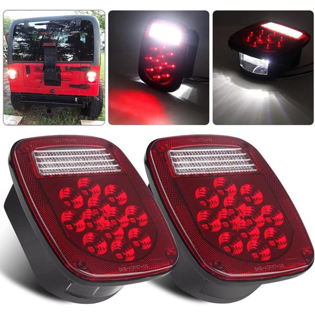 1.多機能: これらのテールライトは、ストップ、ブレーキ、リバース、ターンシグナル、テール、ランニング、ナンバープレートライトの機能を兼ね備えています。 YJ TJ テールランプ交換用として非常に相性が良いです。