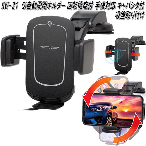 ●KW-21 Qi自動開閉ホルダー回転機能付き手帳対応キャパシタ付き吸盤取り付け KW21