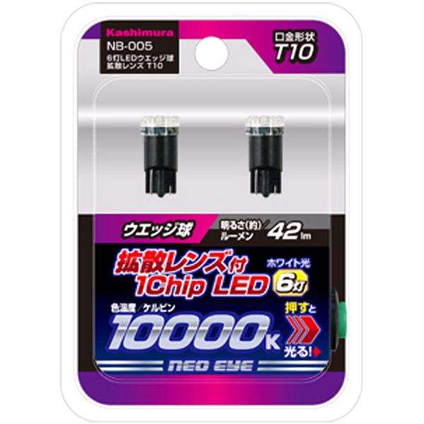 NB-005 6灯LEDウエッジ球 拡散レンズ T10 ホワイト 2個入り 車内用 カシムラ kashimura NB005【お取り寄せ商品】【カー用品 ライト バルブ】