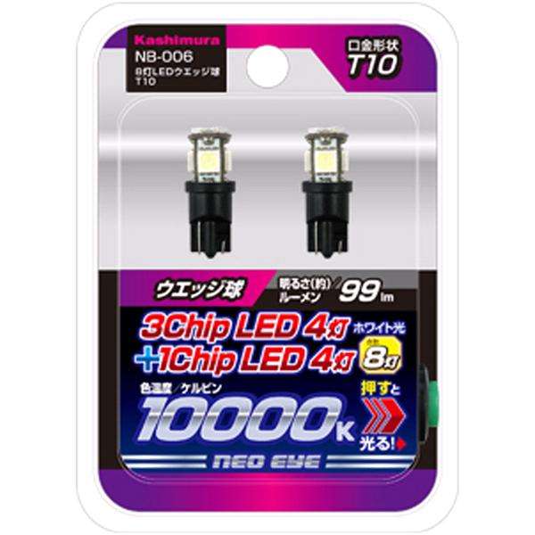 NB-006 8灯LEDウエッジ球 T10 ホワイト 2個入り 車内用 カシムラ kashimura NB006【お取り寄せ商品】【カー用品 ライト バルブ】