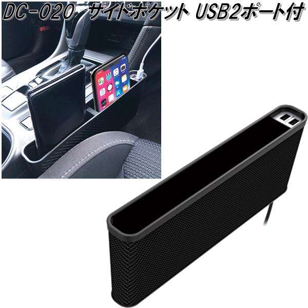 DC-020 サイドポケット USB2ポート付 カシムラ kashimura DC020【お取り寄せ商品】【カー用品 車載用充電器】