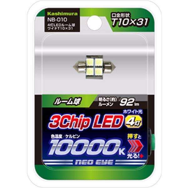 NB-010 4灯LEDルーム球 ワイド T10×31 ホワイト 車内用 カシムラ kashimura NB010【お取り寄せ商品】【カー用品 ライト バルブ】