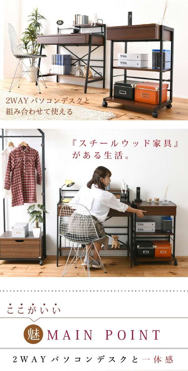 2WAYパソコンデスク 複合機ラック サイドラック プリンターラック サイドチェスト PCデスク サイドテーブル