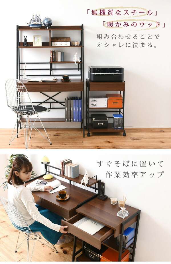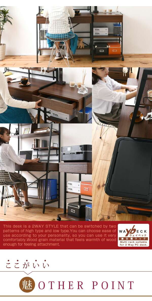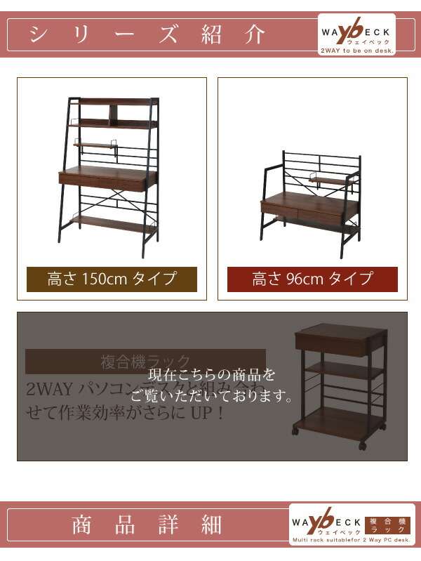 ◇2WAYパソコンデスクと共通デザイン、天板の高さも同一と、2WAYパソコンデスク横に最適な複合機ラック。