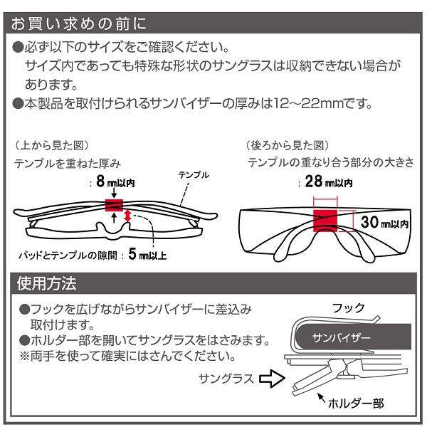 ●サングラスを2本収納できるサンバイザー取付式のホルダーです。