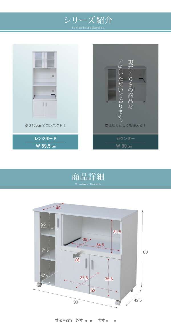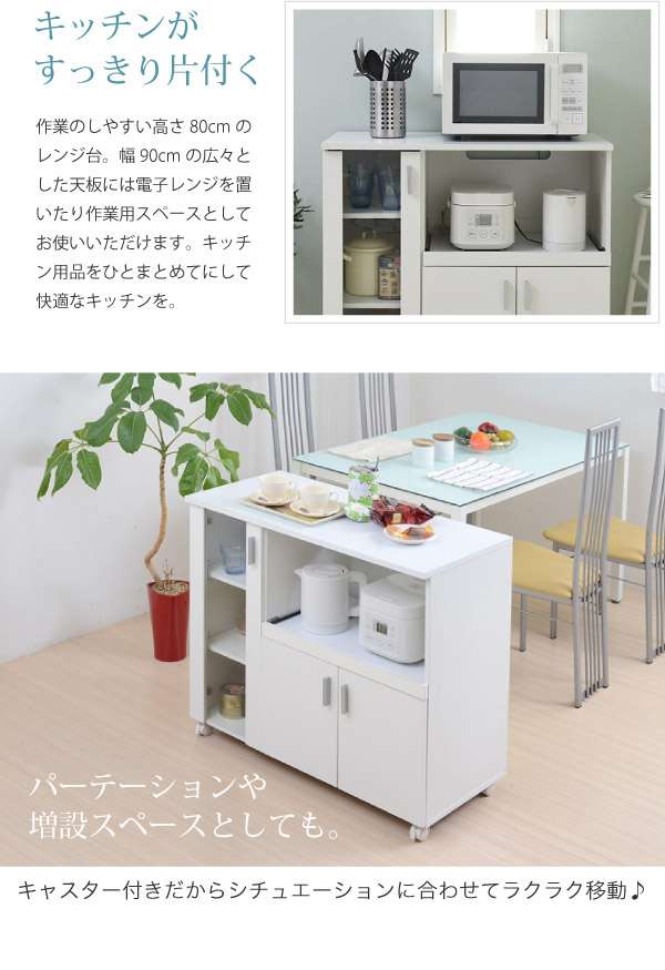キッチンカウンター キッチンボード 90 幅 コンセント 付き レンジ台 キッチン収納 食器棚 カウンター キャスター付き シンプル キャビネット