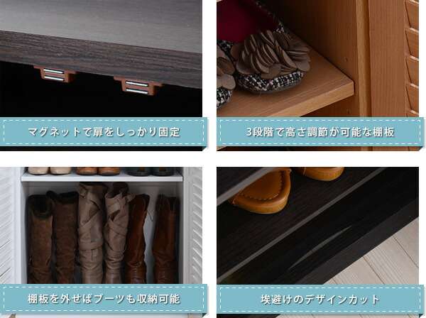 スリムシューズボックス シューズラック ルーバーシューズボックス 下駄箱 靴箱 靴入れ 玄関 玄関収納 シューズ シューズロッカー くつばこ くつ 棚 収納 省スペース 薄型 木製 ナチュラル ブラウン ホワイト 白 60幅