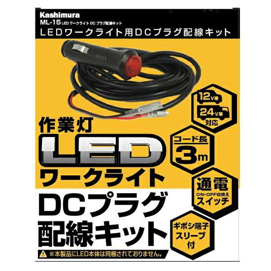 ML-15 LED ワークライト用 DCプラグ配線キット カシムラ kashimura ML15【お取り寄せ商品】【カー用品 シガーソケット】