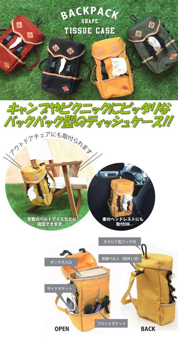 ◇キャンプやピクニックに連れて行きたいバックパックのリュックのカタチをしたティッシュケース♪