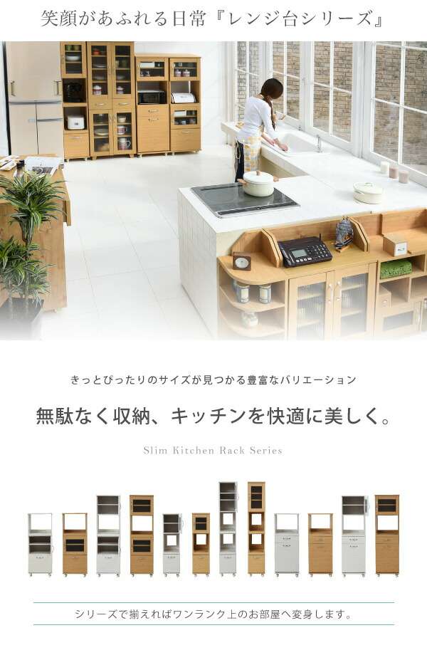 スリム レンジ台 食器棚 レンジラック 幅 45 H156 キッチン 収納 隙間収納 棚 収納棚 スライド キッチンラック キッチン棚 ラック