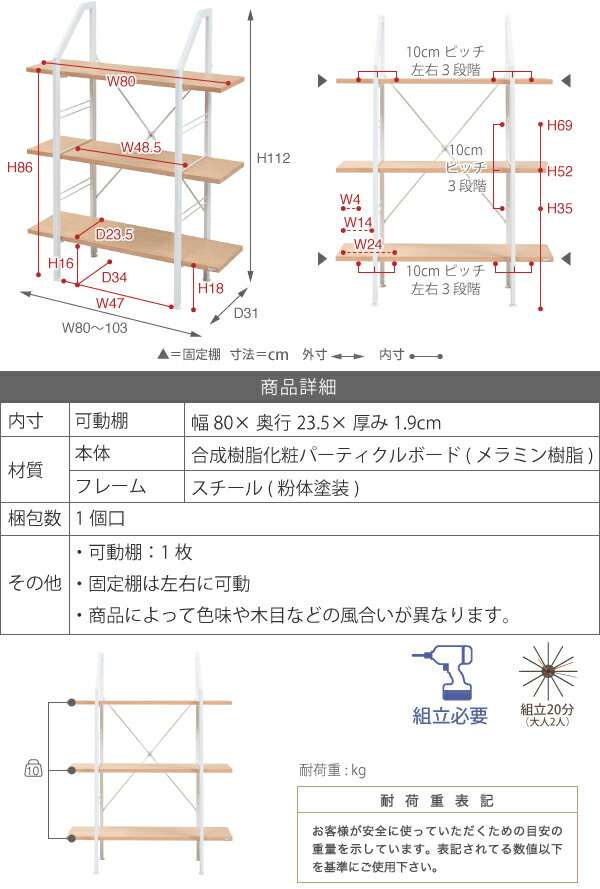 (中段棚)幅80×奥行23.5cm×高さ35?69cm