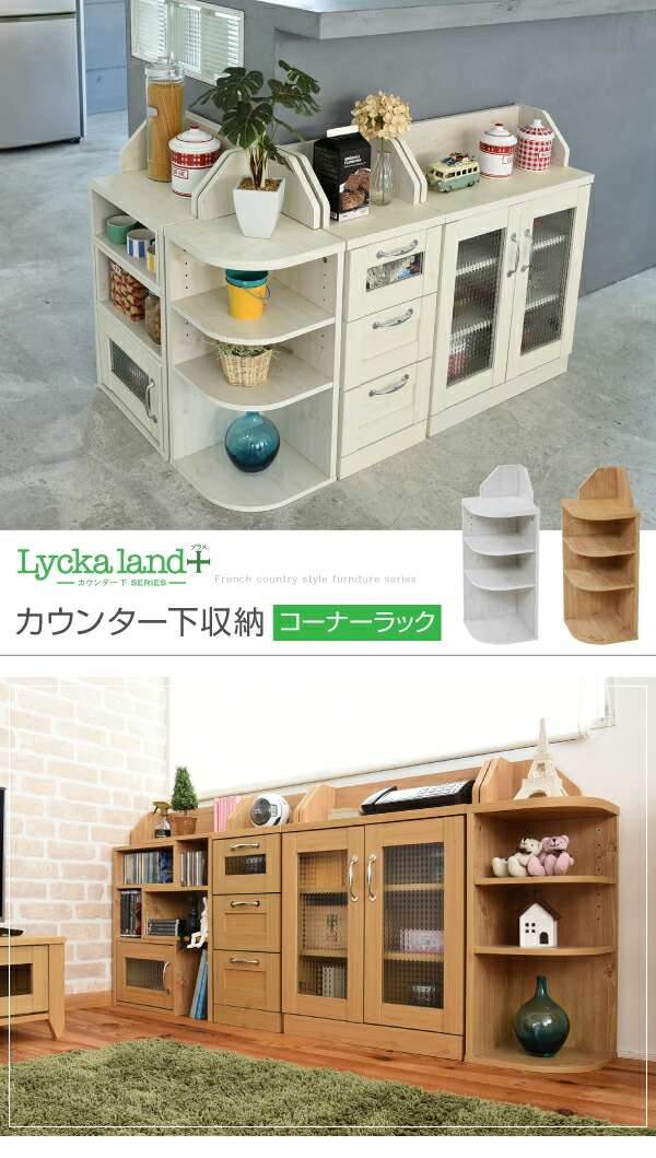 FLL-0064-WH Lyca land(リュッカランド) カウンター下収納 コーナーラック カントリー調 三角ラック 3段 ホワイト