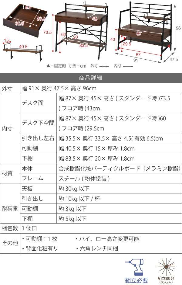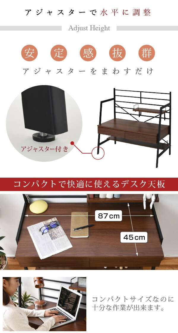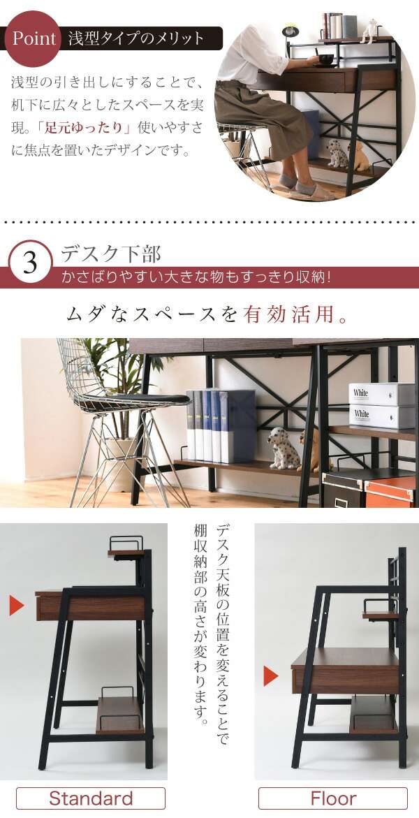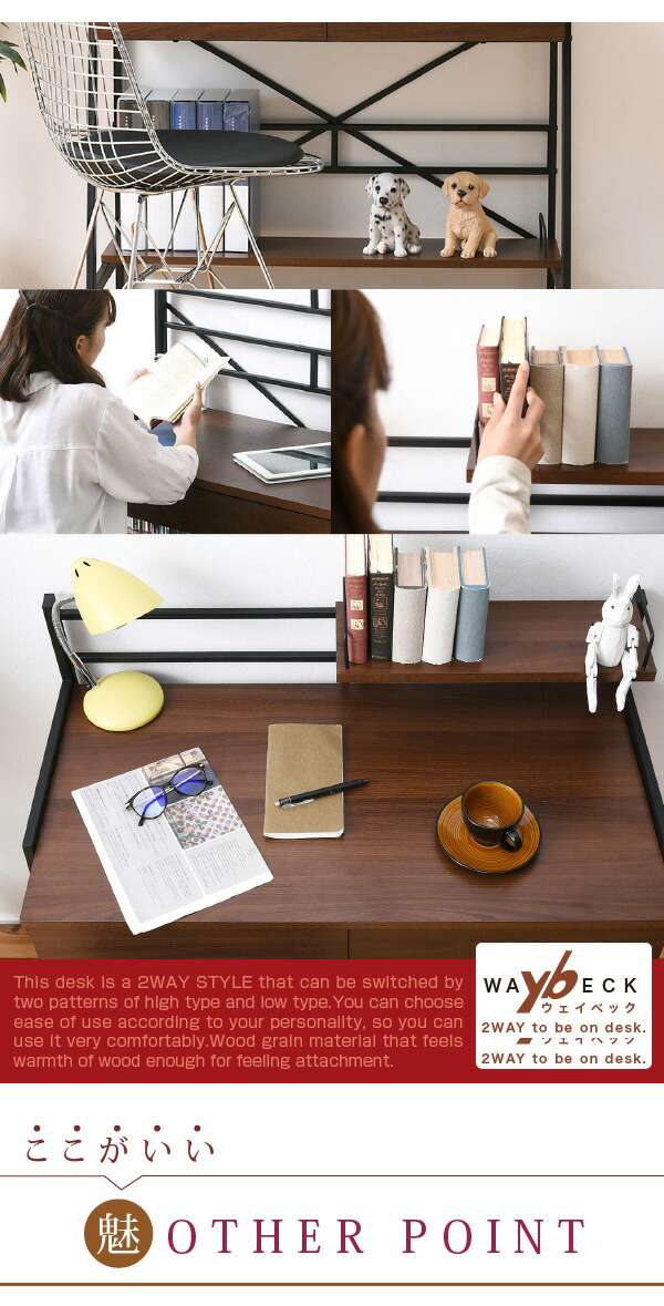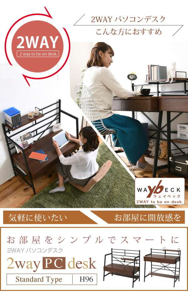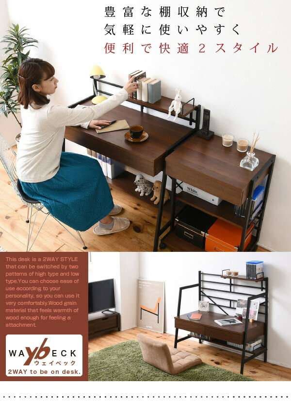 2WAY パソコンデスク 90 幅 高さ調整 書斎机 ワークデスク 棚付き 組み換えデスク 薄型デスク ローデスク