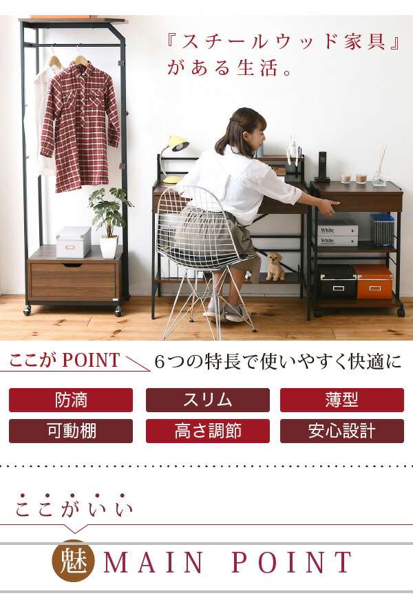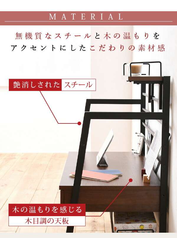 ◇木目とスチールの組み合わせがスタイリッシュなデスクです。