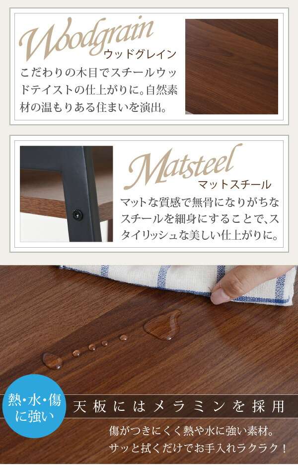 ◇本体にはメラミン樹脂シートを採用しているので、耐熱性・耐水性・耐傷性に優れています。
