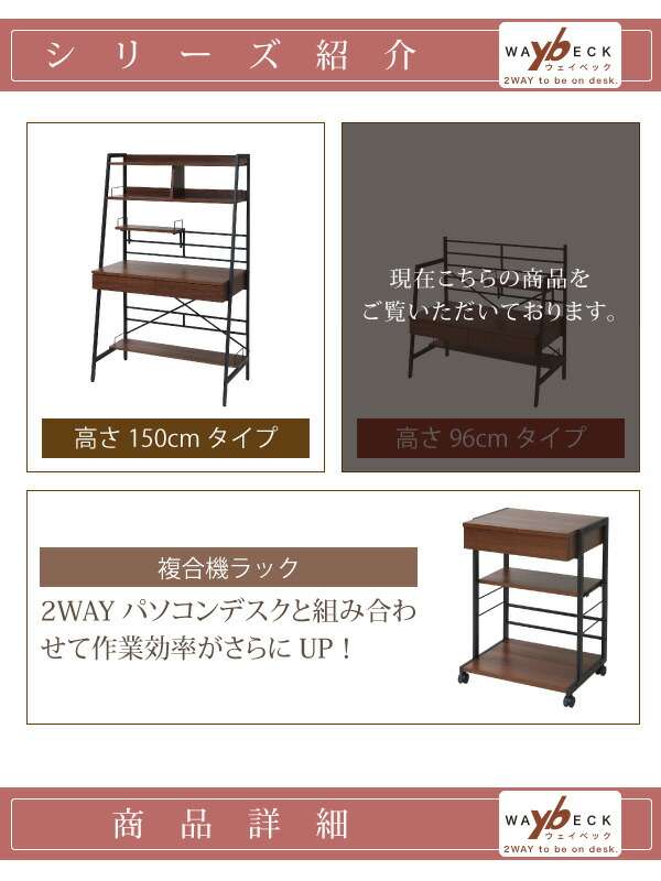 ■JK-PLAN KKS-0012-BR 2WAYパソコンデスク 複合機ラック ブラウン