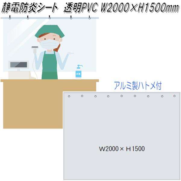 レジ前 飛沫感染対策 静電防炎シート カーテン ハトメ付き W2000×H1500mm【送料無料(北海道・沖縄・離島を除く)】【メーカー直送品】【同梱/代引き不可】【受注生産品】透明ビニールカーテン 透明ビニールシート