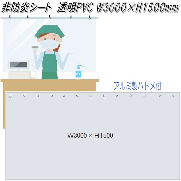 ■レジ前 飛沫感染対策 非防炎シート カーテン ハトメ付き W3000×H1500mm