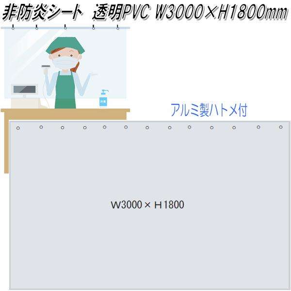 ■レジ前 飛沫感染対策 非防炎シート カーテン ハトメ付き W3000×H1800mm