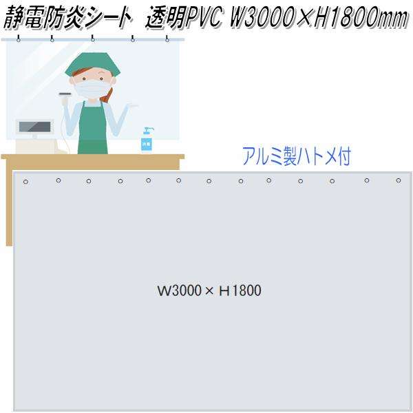 ■レジ前 飛沫感染対策 静電防炎シート カーテン ハトメ付き W3000×H1800mm
