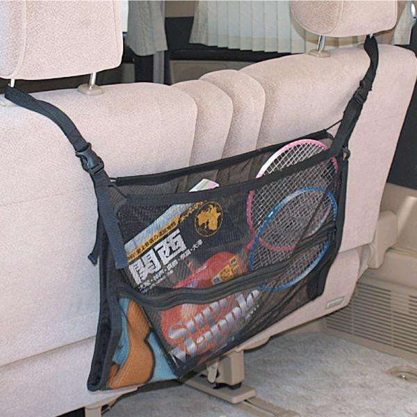 ◇アシストグリップ、ヘッドレストなど、3通りの取り付け方法ができるファスナー付き収納ネットです。