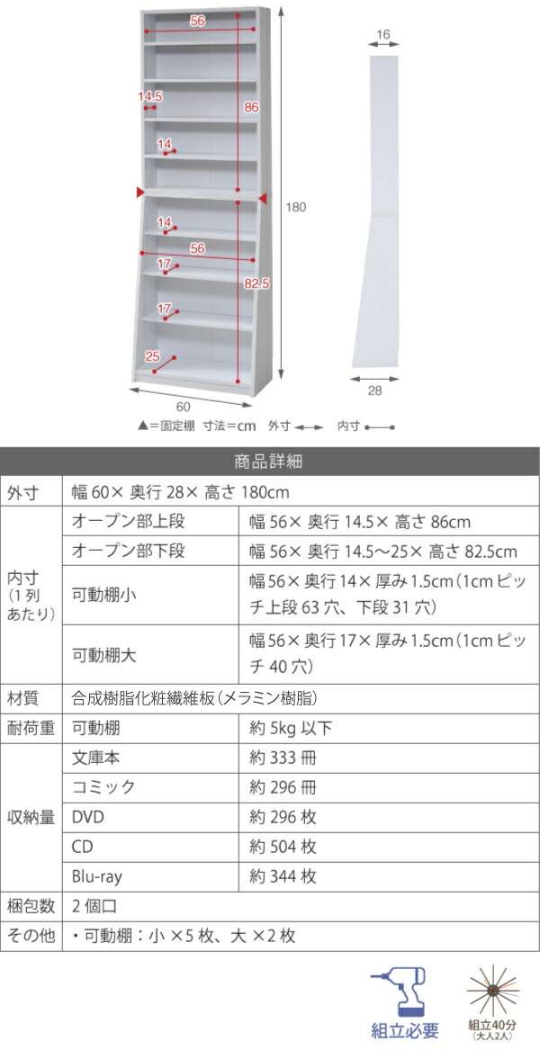 60cm H180 1cmピッチ本棚 文庫 本棚 文庫本用 漫画 マンガ コミック cd dvd 家具 スリム 棚 大量 文庫本 オープンラック コレクションラック マルチラック 文庫本収納 コミック収納 コミックラック ブックラック ラック 本収納 大量収納 リビング収納 書斎収納 1cmピッチ 1センチピッチ 収納ラック 収納 ナチュラル ホワイト 白 スライド 小説 書籍 新書 ノベルズ ブックス 同人誌 収納 本書