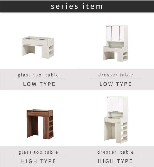 FDR-0004SET-WH ガラスデスク ガラステーブル ローテーブル ドレッサー 兼 デスク ホワイト
