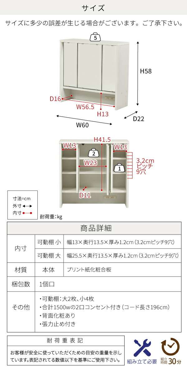 (ミラー下)幅56.5×奥行16×高さ13cm
