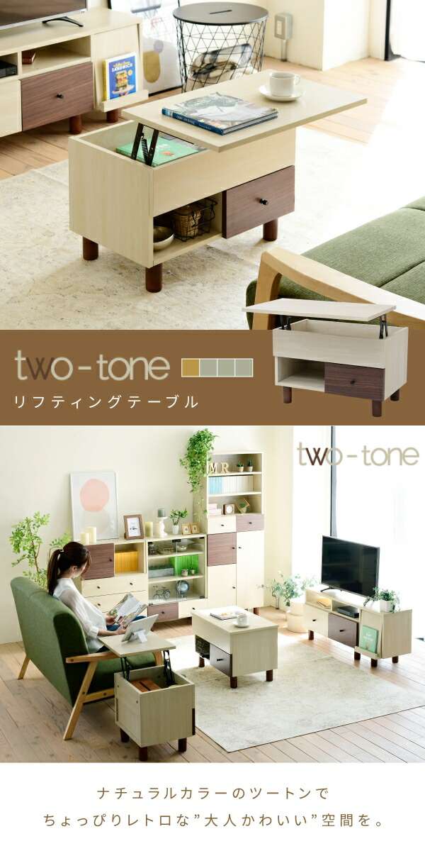 優しいカラーのツートーンがレトロ可愛い昇降式リビングテーブル