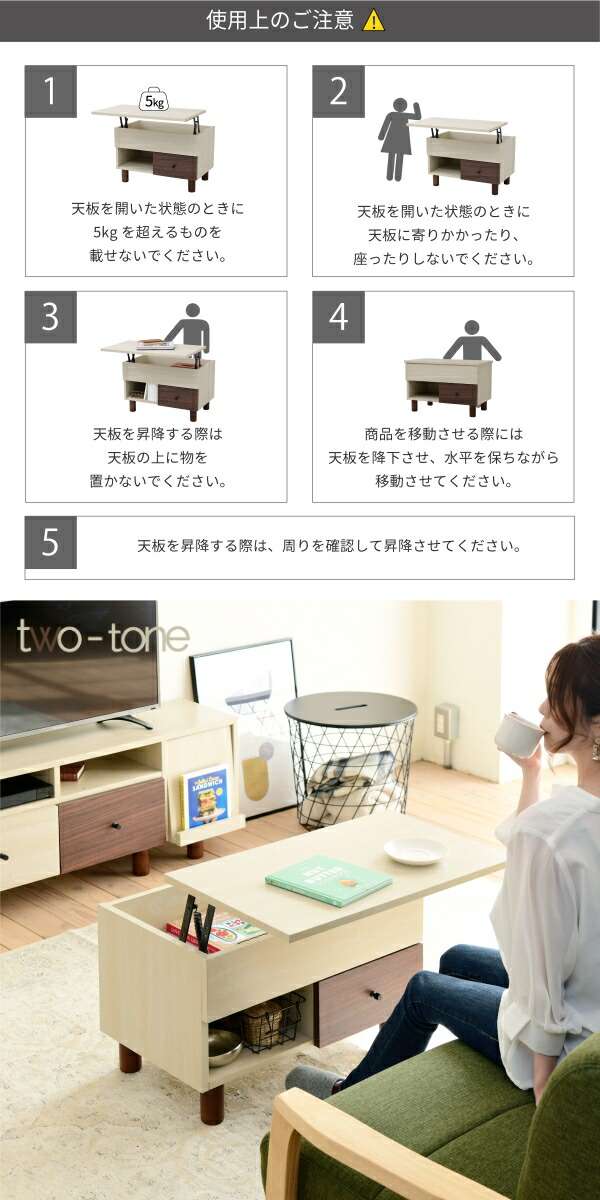 ジェイケイプラン FMB-0006-NADB リフトアップテーブル リビングテーブル 昇降式 テーブル ナチュラル&ダークブラウン【組立式】【メーカー直送】【同梱/代引不可】【組み合わせ収納 サイドボード リビング リビング収納家具】