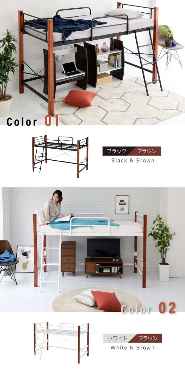 ジェイケイプラン IRI-1042SET-BKBR ロフトベッド 天然木脚 低め ロータイプ シングル パイプ システム ベッド ブラック/ブラウン