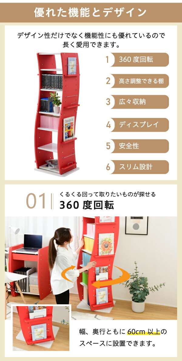 多目的ラック 書棚 回転コミック 収納 本収納 タワー 360度 ブックシェルフ 回転式コミックラック オープンラック おしゃれ 木製 白 ダークブラウン レッド 回転式 おすすめ 新築祝い 引越し祝い 新社会人 一人暮らし 書斎 システムデスク 誕生日 プレゼント ギフト 父の日 母の日 バレンタインデー ホワイトデー