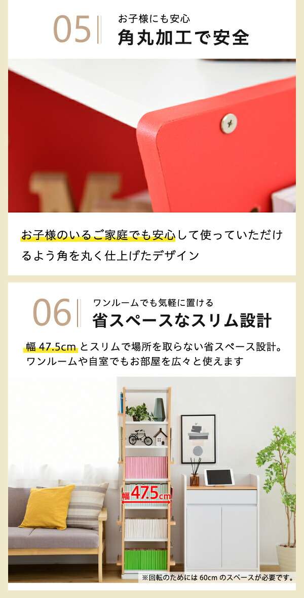 JK-PLAN FWD-0209-WHRD 360度 回転 コミック ラック WAVY スリム 省スペース 漫画 CD 本棚 書棚 7段 ホワイト レッド
