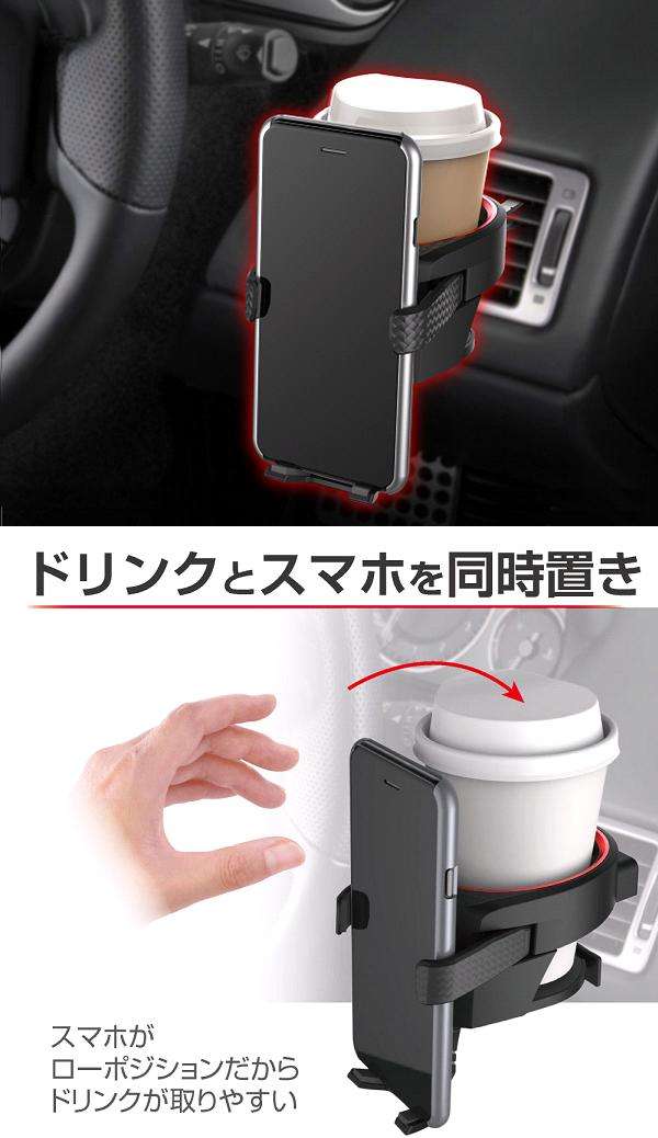 ドリンクとスマホを同時置きできるドリンクホルダー