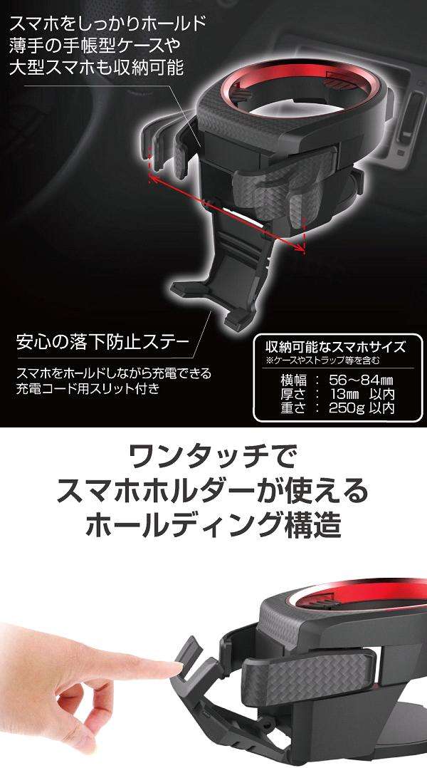 ●スマホホルダーが低めの位置にあるのでドリンクの出し入れが容易です。