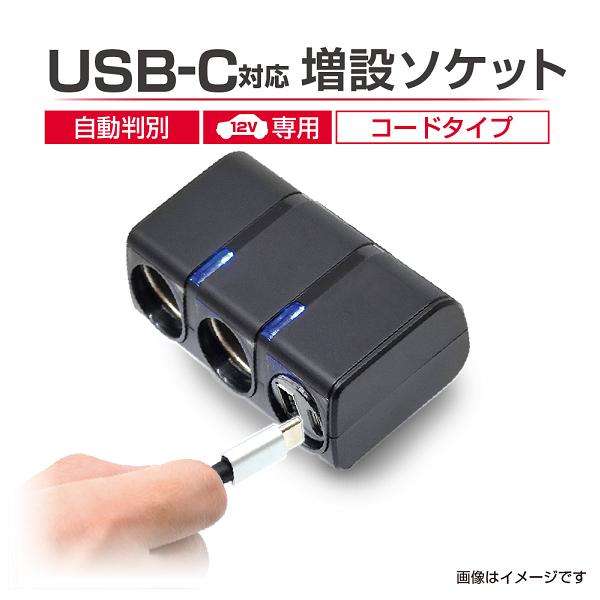 12Vの2連ソケットとUSB-CポートとUSB-Aを備えた増設ソケット