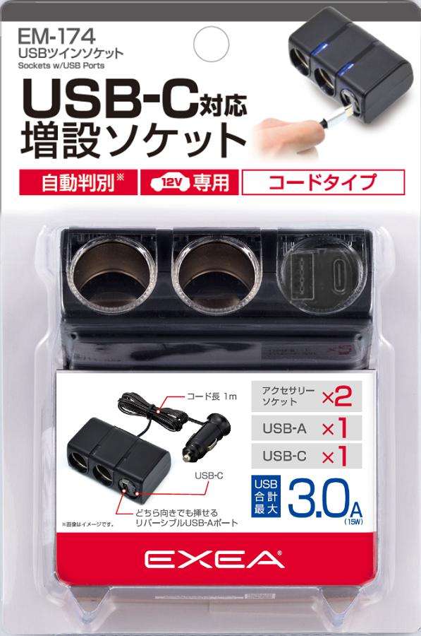 星光産業 EM-174 USBツインソケット EM174【お取り寄せ商品】カー用品 USB 電源 シガーソケット USB充電器 携帯充電器 スマホ充電器 iPhone充電器