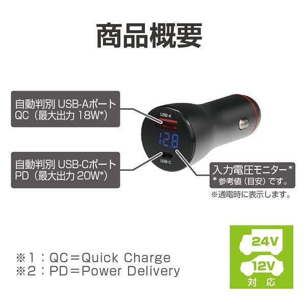 ●電圧モニター付きで、高速充電できるUSB-A、USB-Cの2ポートを搭載しています。