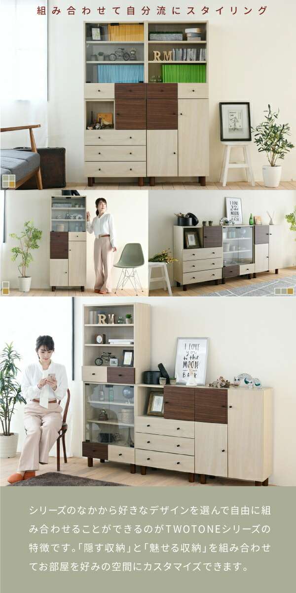 ■ジェイケイプラン FMB-0001-NADB ガラス扉&チェスト ナチュラル&ダークブラウン