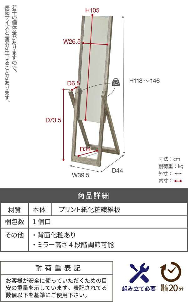 ■ジェイケイプラン FAW-0008-NA スタンドミラー 姿見 古材 古木