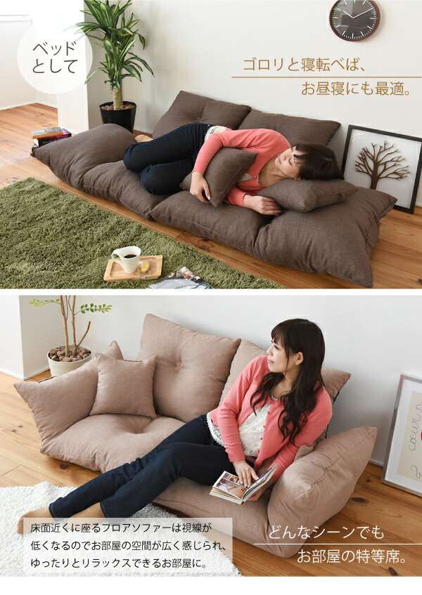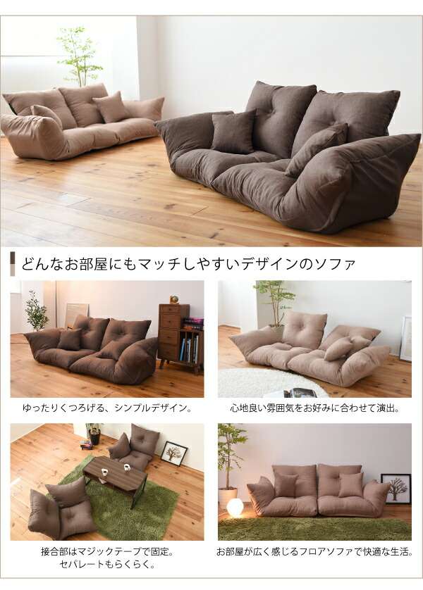 ◇分割できるから、座椅子としても、シンプルなフロアソファとしても活躍する画期的なソファ。