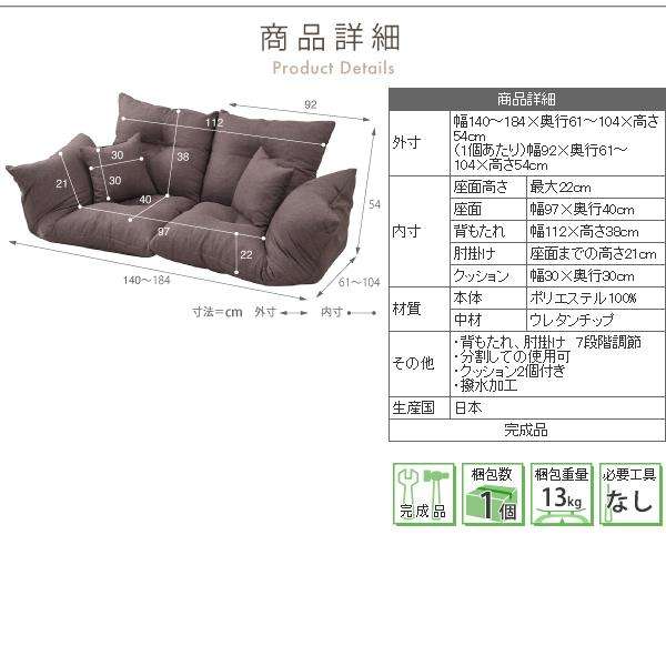 SY-005 ジャンボ カウチソファ 2分割タイプ クッション 2個付き【送料無料(北海道・沖縄・離島を除く)】【メーカー直送品】【同梱/代引不可】【正陽産業 2人用 ソファ ソファー 座椅子 7段階リクライニング】