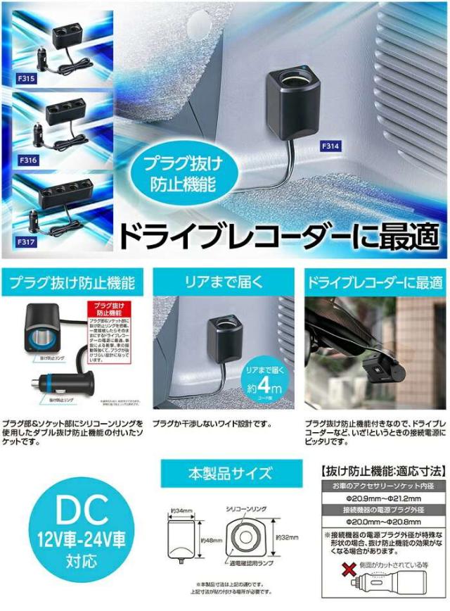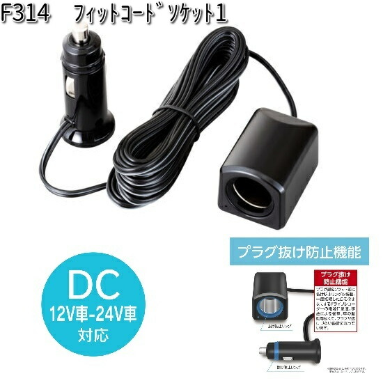 F314 フィット コード ソケット1 DC12/24V車対応 セイワ SEIWA F-314【お取り寄せ商品】【カー用品 シガーソケット 】